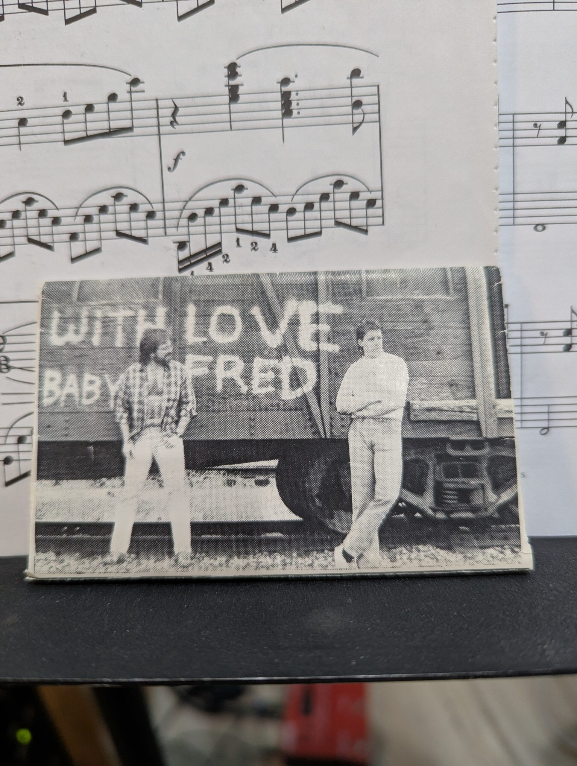 Baby Fred is a duo consisting of Briyan Frederick Baker of Gajoob and Blind Mime Ensemble, and Joe Maki of Driveway Static. Founded in March of 1984 in Logan Utah. Briyan and Joe met at the Albertson’s grocery store they worked at while attending Utah State University. On Sunday, March 18th, 1984, Joe was hosting a breakfast for a crowd of hungover St. Patrick’s Day partiers. While Joe was noodling on his piano, Briyan asked if he ever wrote his own songs. Joe had fiddled a bit with it but never really found a groove. Briyan suggested they try writing together, and started bringing his 4-track cassette recorder over on weekends and the odd day off. Songs were originally recorded on the Tascam Porta One Ministudio 4-track cassette recorder, then migrated to digital recording. All compositions are entirely original, as is much of the instrumentation. Vocals produced by SunoAI except where noted.